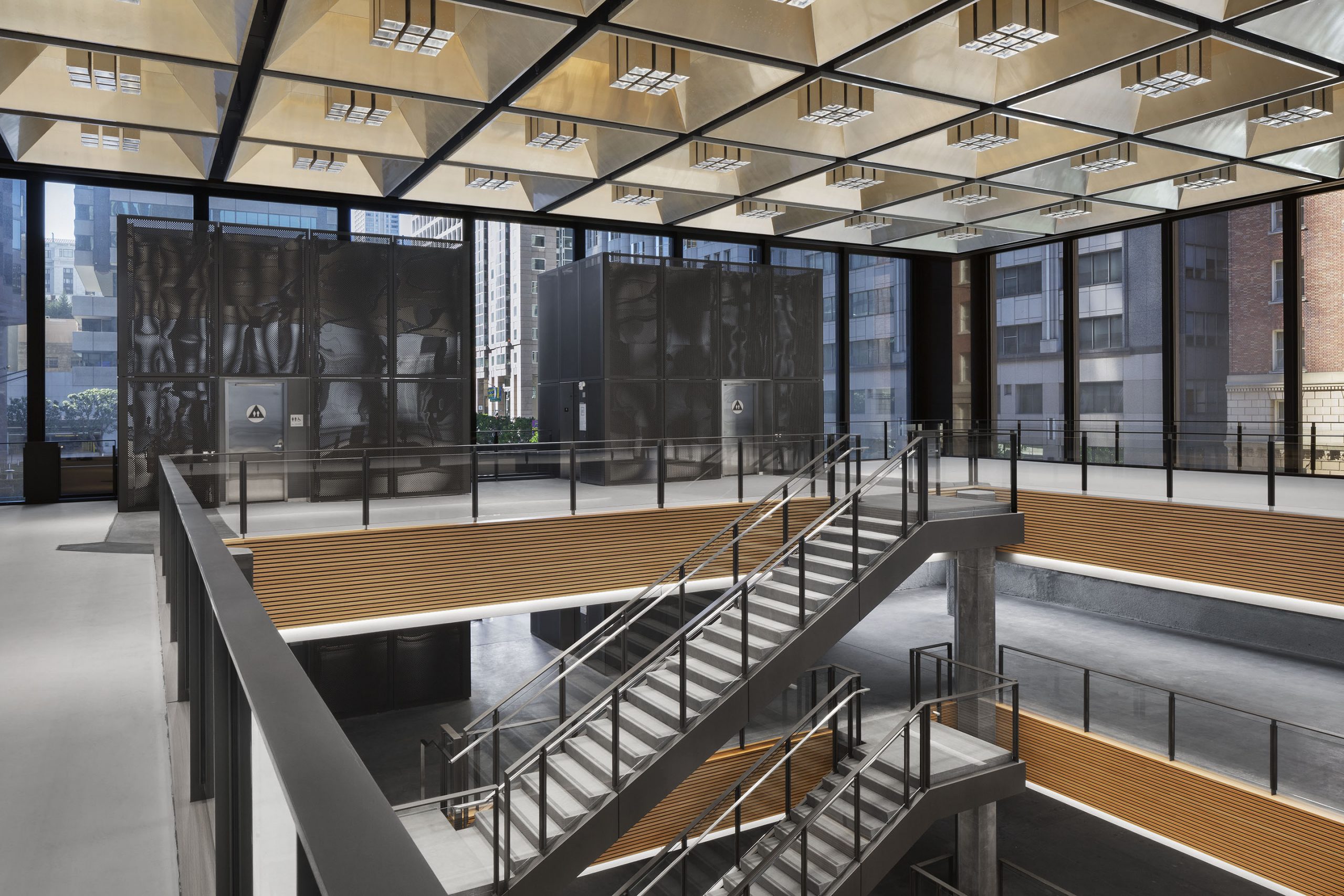 BCCI completed a renovation and seismic upgrade of the granite and glass cube at the corner of Montgomery and California Street – an iconic structure that was once Bank of America’s flagship retail location next door to its World Headquarters. The property, now owned by Vornado Realty Trust, has been transformed into a dramatic commercial office building with a five-story, 50’x50’ atrium; a stadium-style staircase from the basement to the first floor; cantilevered stairs; two new elevators; and all new mechanical, electrical, plumbing, and fire sprinkler systems.